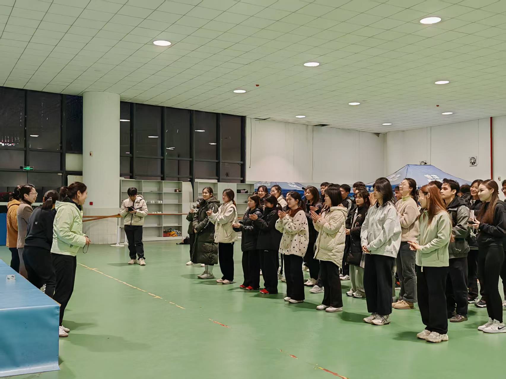 4月2日晚,心理健康教育咨询中心联合体育学院在西校区体育馆启动"以体强心·心韵律动"系列活动。首场瑜伽活动通过呼吸训练和基础体式教学,帮助学生在运动中释放压力。